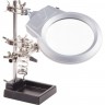 Держатель REXANT «ТРЕТЬЯ РУКА», 2 зажима, чугун, лупа 90 мм, подставка паяльника, LED подсветка 12-0253