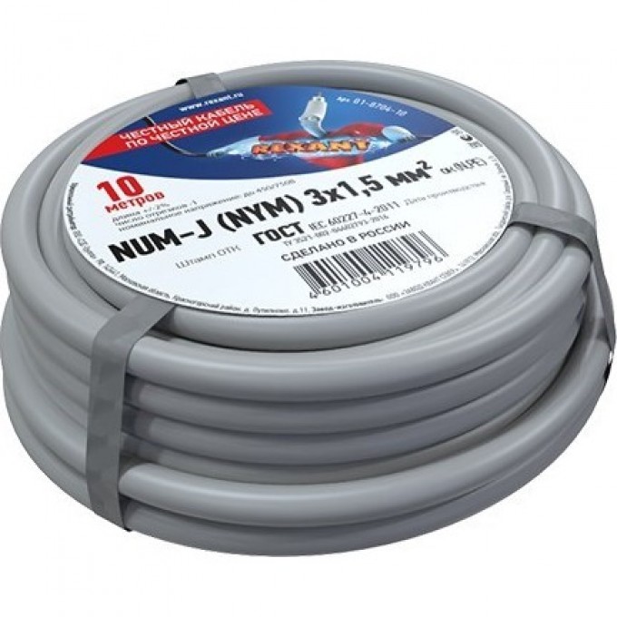 Кабель REXANT NUM-J 3x1.5 мм² силовой медный 10 м 01-8704-10