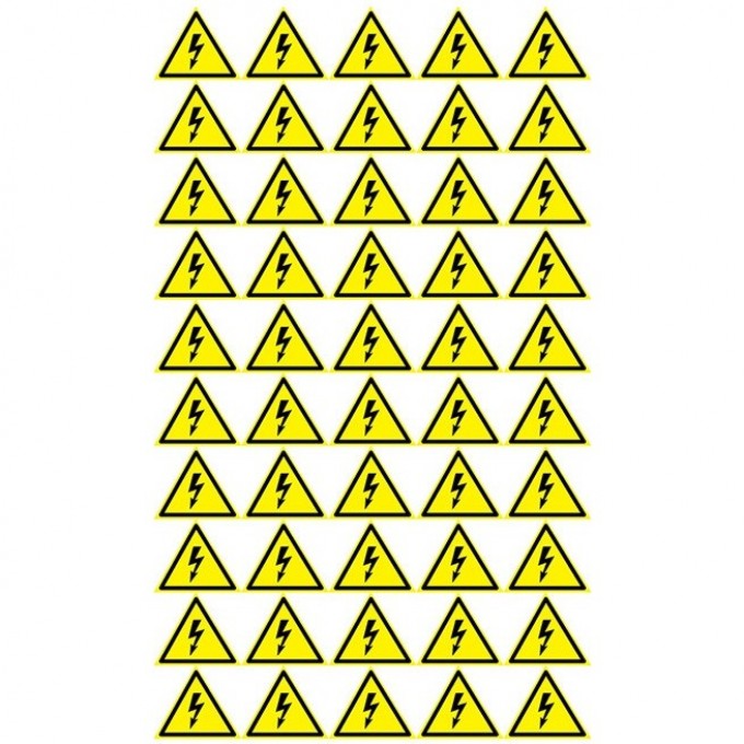 Набор знаков электробезопасности «Опасность поражения электротоком». Данные знаки предназначены для размещения на электрооборудовании и приборах, опорах линий электропередачи, дверцах силовых щитков, на электротехнических панелях и шкафах, а также на ограждениях токоведущих частей оборудования, механизмов, приборов, с целью сообщения об опасности поражения электротоком. Такие наклейки предупреждают и информируют окружающих. Знаки изготовлены на основе самоклеящейся пленки, предназначенной для информационных знаков на улице и в помещениях.
