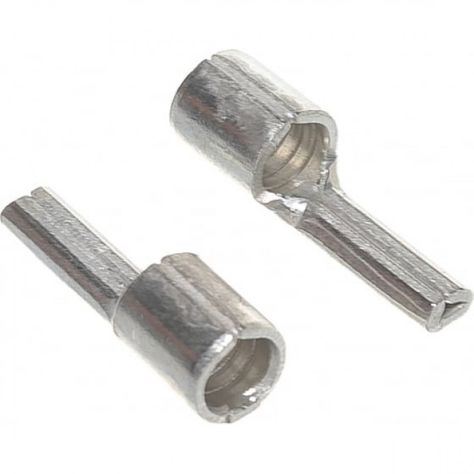 Плоский штифт имеет рельефные насечки, обеспечивающие надежную фиксацию в прижимной клемме. Соединитель одного типоразмера возможно использовать на несколько сечений жил кабеля.