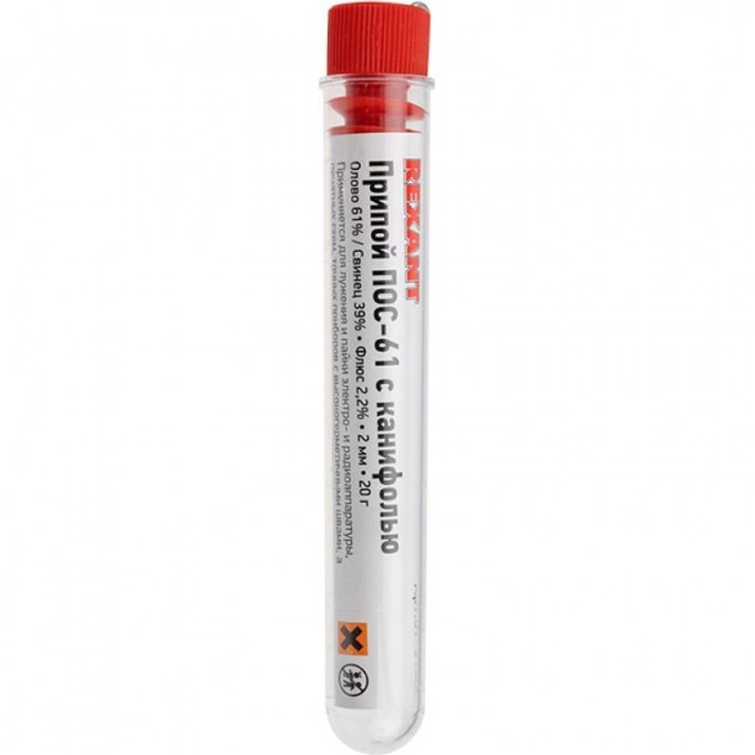 Припой с канифолью REXANT, 20г, Ø2 мм, (олово 60%, свинец 40%), колба-карандаш 09-3104