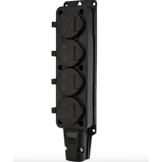 Розетка REXANT штепсельная четырехместная, с/з, 16 А, IP54 каучук 111-114