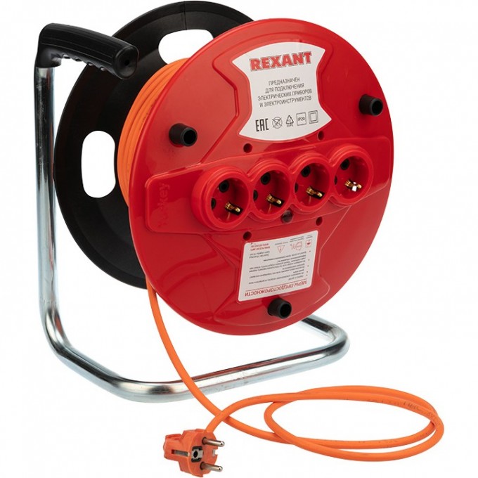 Удлинитель на катушке REXANT с заземлением и с 4 гнездами предназначен для подключения электрических приборов и электроинструмента, когда недостаточно стандартной длины шнура для питания от стационарных розеток.