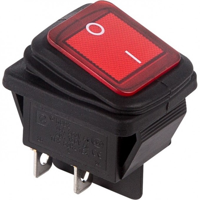 Выключатель клавишный 250V 15А (4с) ON-OFF красный с подсветкой ВЛАГОЗАЩИТА предназначен для коммутации электрических цепей переменного тока напряжением до 250В в условиях повышенной влажности. Клавишные (Рокерные) выключатели применяются в качестве комплектующих изделий различного электрооборудования (в сетевых фильтрах и удлинителях, аудио-оборудовании, блоках питания, электроустановках на различных производствах, автомобилях, и многих других местах). Защитная оболочка клавиши обеспечивает влаго и пылезащиту механизма переключения. Такой клавишный переключатель имеет два положения. Принцип действия основан на перемещении клавиши в одну из позиций. Для переключения в нужное положение требуется приложить некоторые усилия на клавишу. Монтаж осуществляется без применения винтов на плоских панелях толщиной от 0.8мм до 3мм. Подключение контактов осуществляется плоской клеммой 6.6мм, либо с помощью пайки.